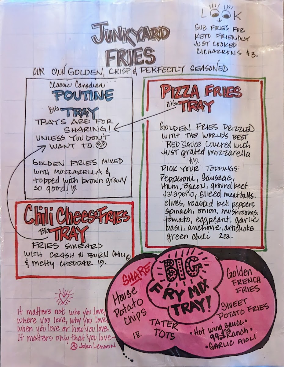 Welcome to Junkyard Cafe, an eclectic destination located in Simi Valley, CA, that promises a feast for both the eyes and the palate. Here, the vibrant decor effectively sets the mood, combining elements of 60's hippie culture with 70's roadhouse charm, creating an inviting atmosphere.