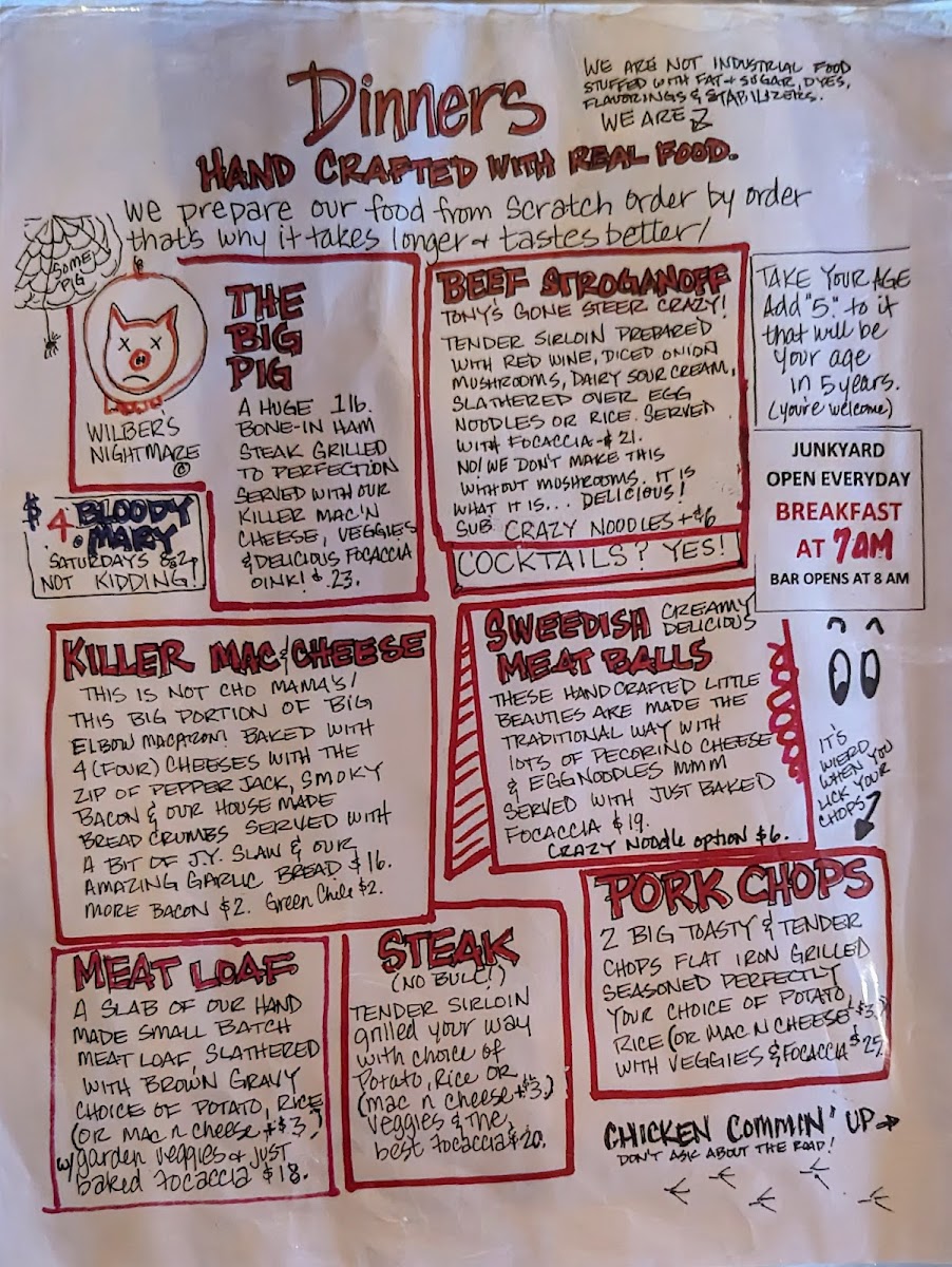 With attentive service and unique monthly specials, such as their homemade corned beef in March and “Thanksgiving” celebrations, Junkyard Cafe guarantees memorable mealtime experiences every visit.